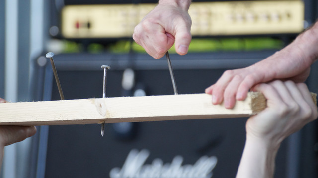 Затеяли ремонт, и необходимо вбить гвозди а рядом нету молотка, зовем братьев они и рукой гвоздь в гонят в доску.